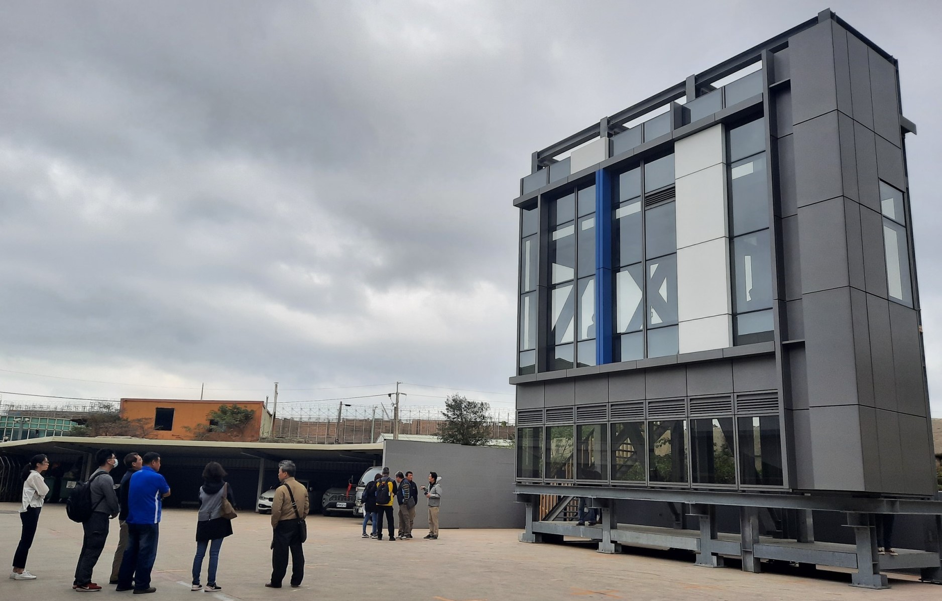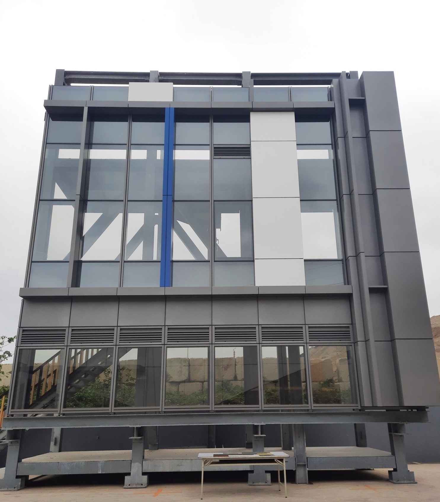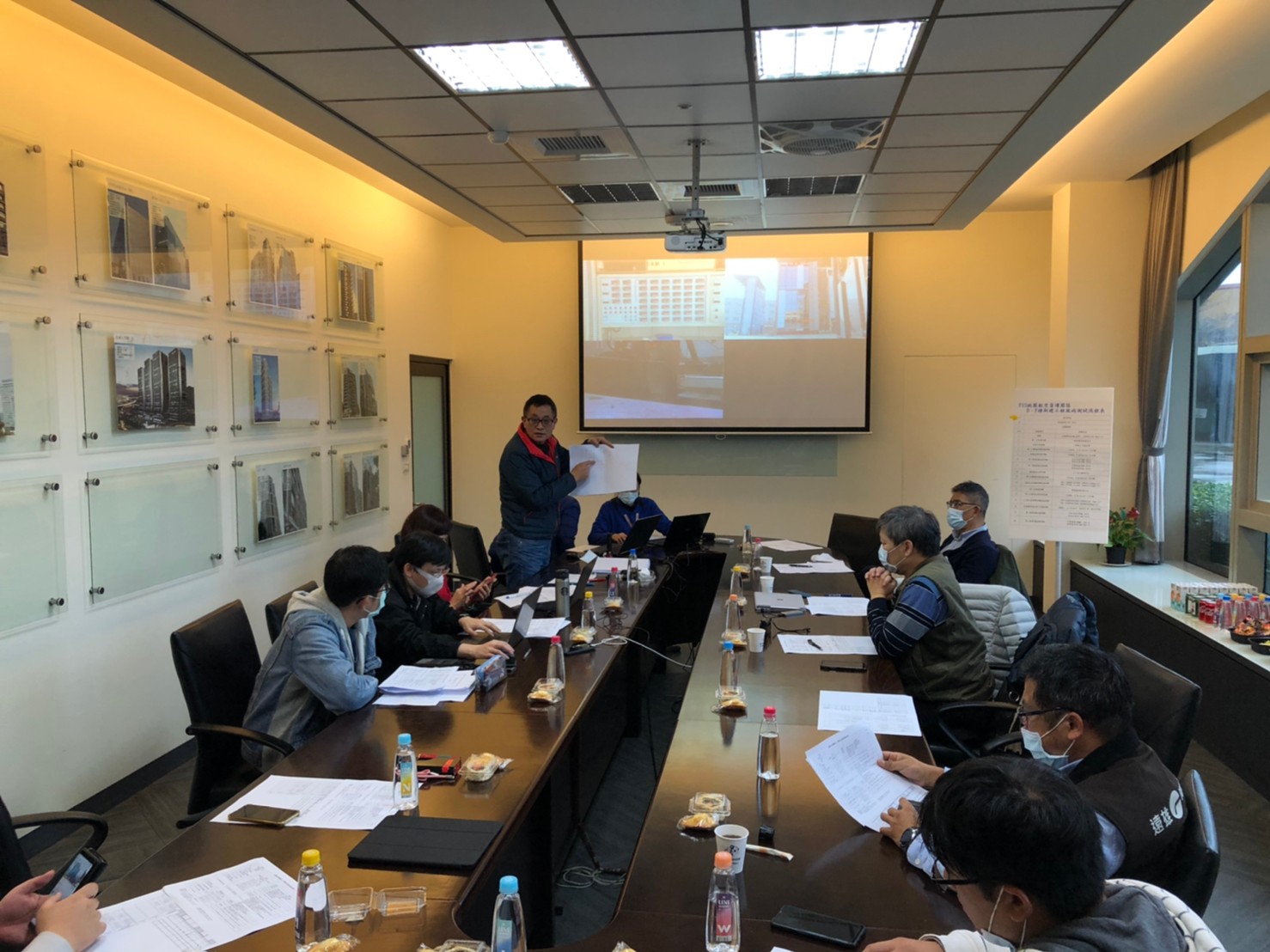 現場核對烤漆色板。 遠雄集團『F1O 桃園航空貨運園區 - 加值廠房D、F棟』新建工程,2020年12月24、25日於中國大陸東莞兆閔-風雨實驗室進行風雨測試,業主、顧問、設計單位於萬信鋁業會議室進行視訊會議確認試體測試狀況。